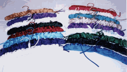 專賣店內服裝擺挂時,應使用本公司提供的包布衣架,並根據顏色來搭配,本公司提供的包布衣架見下圖:![]()